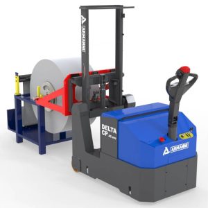 - Delta CP FS je plně elektrický proti závažový vozík vybavený sedlovými V‑tvarovanými vidlicemi, navrženými pro manipulaci s rolí pomocí hřídele při zakládání a odebírání rolí z odvíjecích strojů.